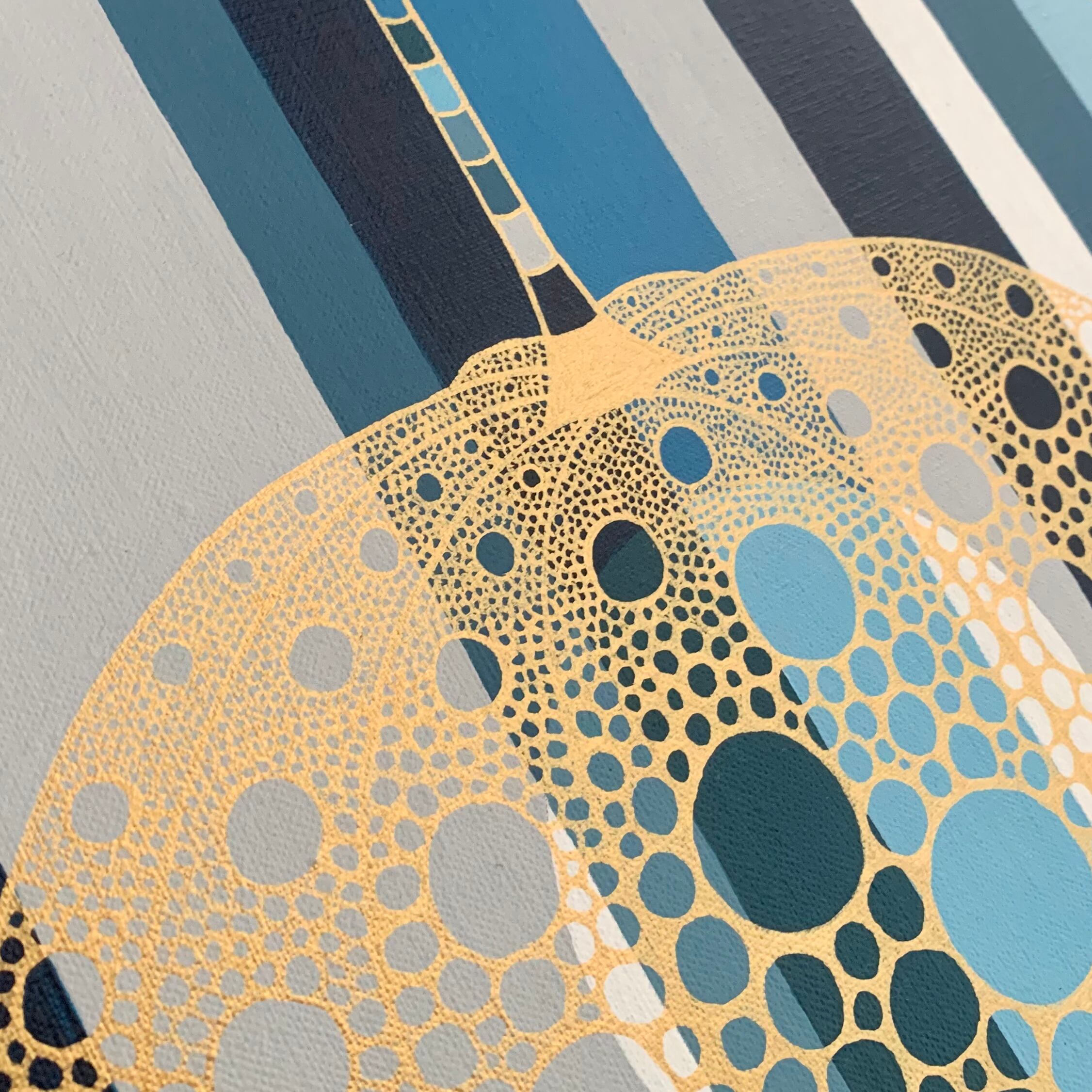 青色は仕事運をアップしてくれます。ビジネスで成功したい人や起業で成功したい人にオススメです。葉脈部分はゴールドの反射絵の具で描いているので、複製画では表現できない光沢があります。光の当たり方によって見え方が全く異なるので、朝昼晩と違う顔を見せてくれます。原画ならではの質感を楽しんでもらえたらと思います。葉脈部分はゴールドの反射絵の具で描いているので、複製画では表現できない光沢があります。光の当たり方によって見え方が全く異なるので、朝昼晩と違う顔を見せてくれます。原画ならではの質感を楽しんでもらえたらと思います。